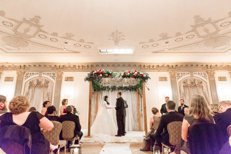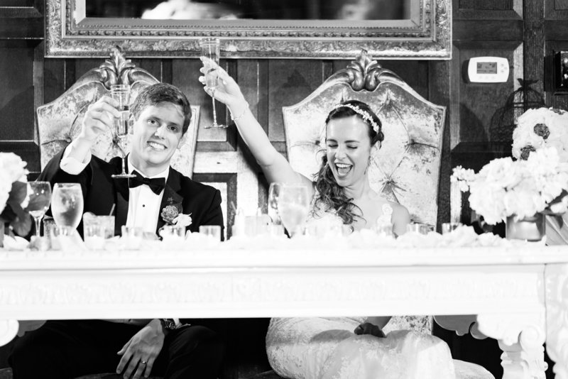We typically schedule 45 minutes for bride + groom portraits if you're sharing in a first look. If you're not sharing in a first look, you can expect to have approximately 10 minutes for bride and groom photos. For this reason, we highly encourage a first look because your photos are the first things to get cut short if something runs behind.